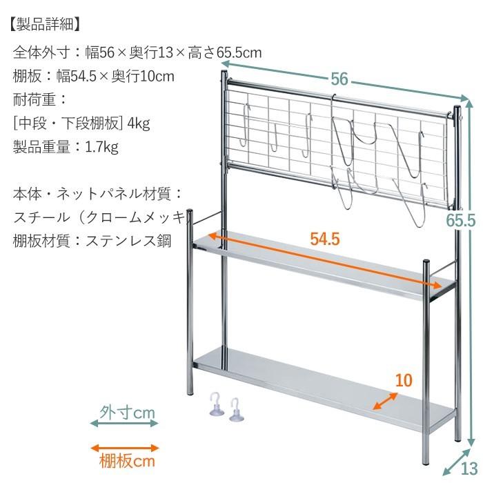 🔥🔥【日本製《日本通商》廚房層架】煲蓋架款 | 闊55CM 🇯🇵🇯🇵日本製造🇯🇵🇯🇵 專為廚房設計的多功能收納架,適合放置鍋具、調味料及廚房工具。其附帶的網狀面板設計提供額外的掛鉤空間,可用於懸掛鍋蓋或廚房工具。上層的棚板可調節高度,方便存放不同尺寸的物品。採用高品質鋼材及不銹鋼製成,耐用且易於清潔,是家庭廚房的理想選擇👍🏻 材質:不鏽鋼 尺寸:56 x 13 x 65.5 cm 重量:1.7kg 產地:日本製 🇯🇵日本直送約3-4星期 ___________________________________________ 💬 唔想錯過最新產品資訊及優惠歡迎加入我哋Whatsapp群組: https://chat.whatsapp.com/IJFfq1i7kMz46Zjc1NSXQF ___________________________________________