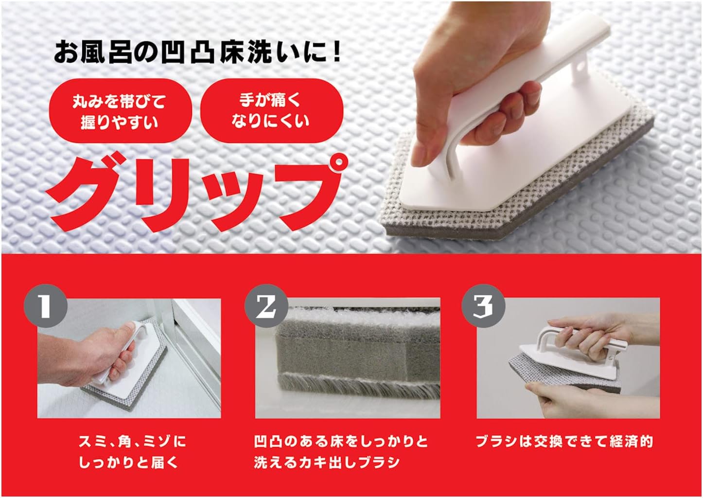 專為浴室及家居地板清潔而設,能有效清除凹凸地板及縫隙中的頑固污漬。握柄採用符合手型的弧度設計,握持舒適,減少清潔時手部疲勞。刷毛部分以多種材質組合而成,包括尼龍、聚乙烯及聚酯纖維,能深入角落及溝槽,清潔力強且不易吸水,保持衛生。刷頭可更換,延長整體使用壽命,亦更具經濟效益。產品可自立或吊掛收納,方便瀝水,保持乾爽整潔👍🏻
