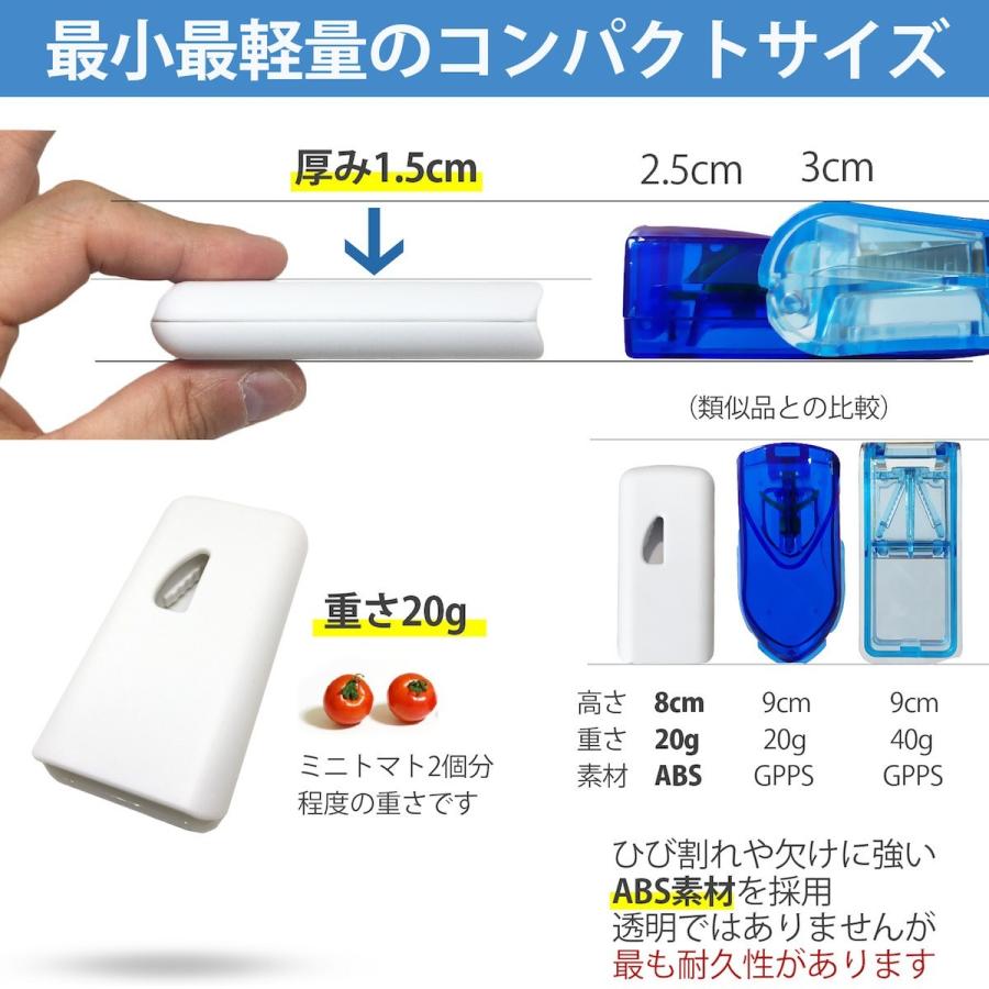 🔥🔥【日本直送《WUMIO》藥丸切割器】 可把藥丸切成2份或4份,切後的藥丸可在蓋面取出非常方便。採用 ABS樹脂,堅固耐用,不易破裂。內置防護刀片,減少使用時的風險。輕巧設計讓攜帶更加方便,並且密封結構可作為藥盒使用👍🏻 材質:ABS樹脂 尺寸:8 x 4 x 1.5cm 重量:20g 產地:中國 日本直送約 3-4 星期 ___________________________________________ 💬 唔想錯過最新產品資訊及優惠歡迎加入我哋Whatsapp群組: https://chat.whatsapp.com/IJFfq1i7kMz46Zjc1NSXQF ___________________________________________