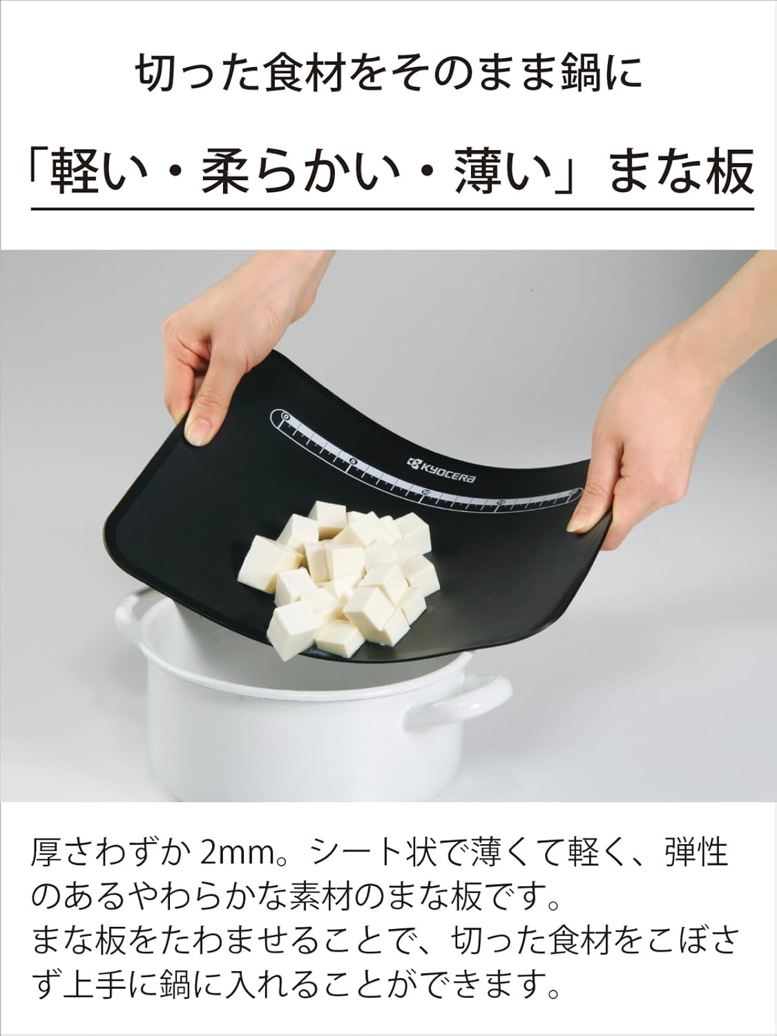 採用耐用的彈性樹脂材質製成,表面堅固且具彈性,能有效減少刀痕殘留,延長使用壽命。黑色設計令食材在砧板上更清晰,方便分辨切割厚薄,特別適合處理肉類、蔬菜及水果。砧板輕巧易拿,厚度僅 2mm,方便收納於廚房抽屜或掛牆使用👍🏻