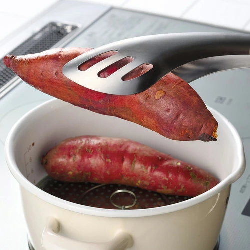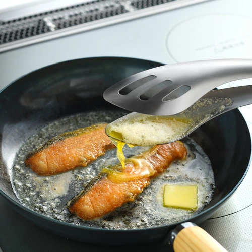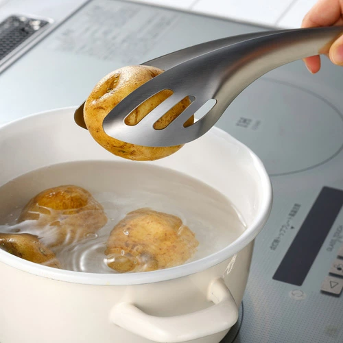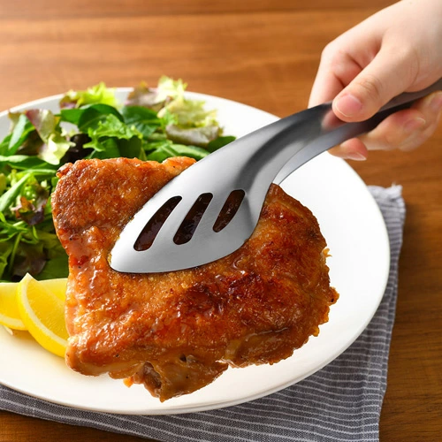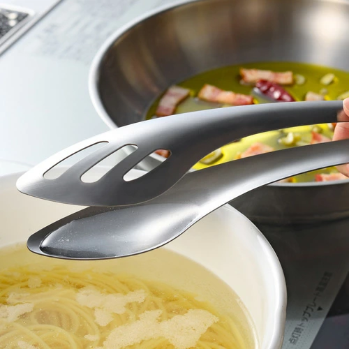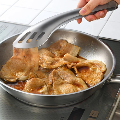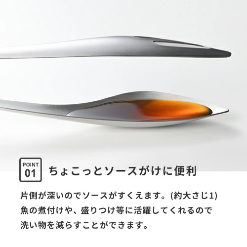 由日本燕三條製造,採用18%鉻不鏽鋼材質,堅固耐用,耐腐蝕性佳。設計特點是其中一側加深,可用來舀取醬汁或湯汁,另一側則能穩固夾取食材,無論是煎肉、炒菜、盛湯或火鍋料理都能輕鬆應付。特許彈簧結構令操作更柔和,握感舒適,長度適中,能保持安全距離避免燙手。放置時夾口能自然懸空,不會弄髒桌面,設計貼心。整體造型簡潔,適合家庭及專業廚房使用,並可放入洗碗機清洗👍🏻