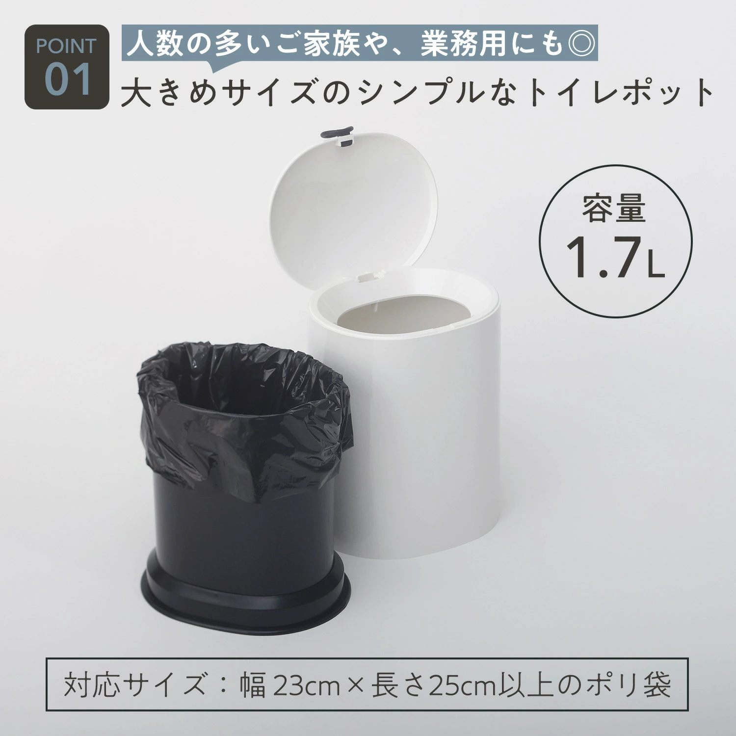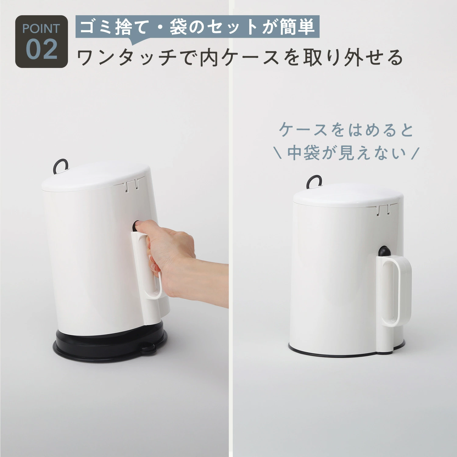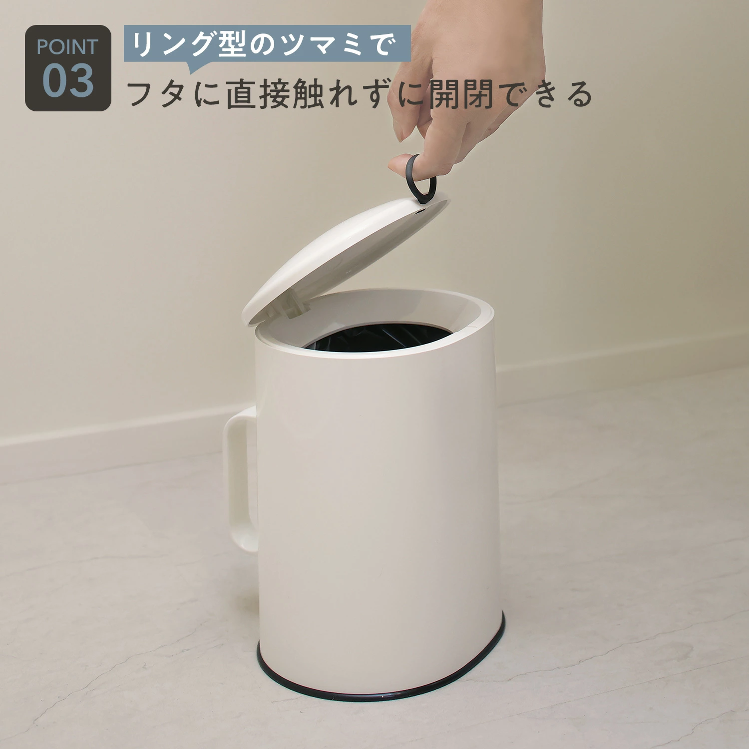 專為浴室及洗手間設計,容量約1.7L,外型簡潔大方。桶身及蓋子採用ABS樹脂,內膽為聚丙烯材質,耐用且易於清潔。頂蓋配有環形拉手,使用者可輕鬆開合,避免直接接觸,設計更衛生。內膽可一鍵拆卸,方便更換垃圾袋或清理,外殼能隱藏垃圾袋邊緣,保持整潔美觀👍🏻