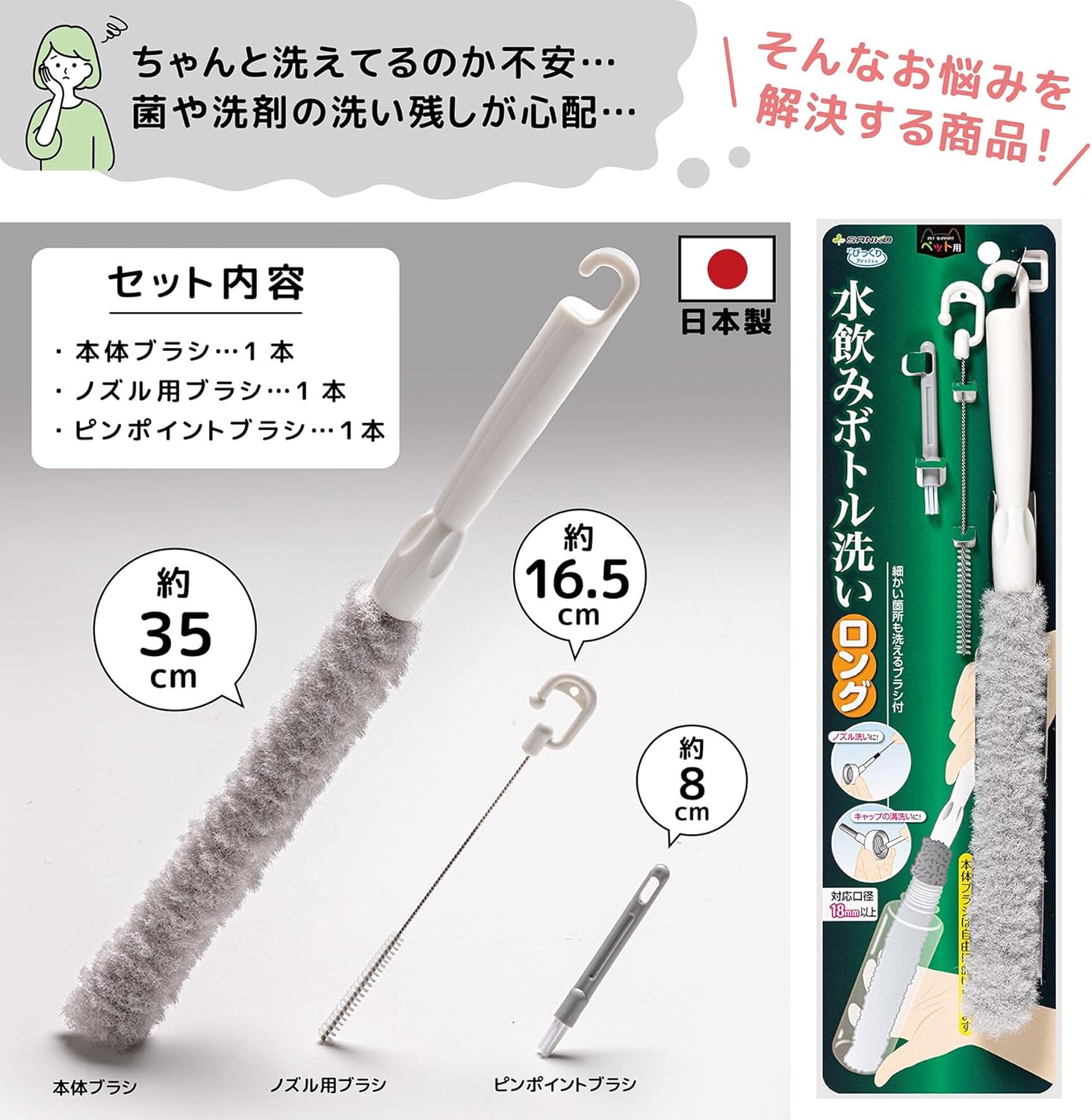 專為寵物水瓶設計的長柄清潔刷,其刷毛採用特殊纖維材質,即使只用清水也能有效去除瓶內污垢,不需使用清潔劑也能達到理想清潔效果。 刷頭設計能深入瓶底,針對口徑18mm以內的水瓶皆可使用,特別適合狗仔、 兔子、天竺鼠等小動物常用的細口水瓶。