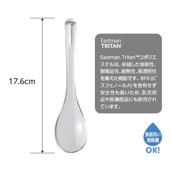 🔥🔥【日本製《AKEBONO》樹脂匙羮】3隻裝 / 冇窿 🇯🇵🇯🇵日本製做🇯🇵🇯🇵 採用Tritan樹脂,高強韌性,透明度高,BPA free,安心使用,洗碗及乾碗機適用,耐熱110度,耐冷-20度👍🏻 材質:飽和聚酯樹脂 尺寸:長17.6cm 重量:40g 產地:日本製 🇯🇵日本直送約3-4星期