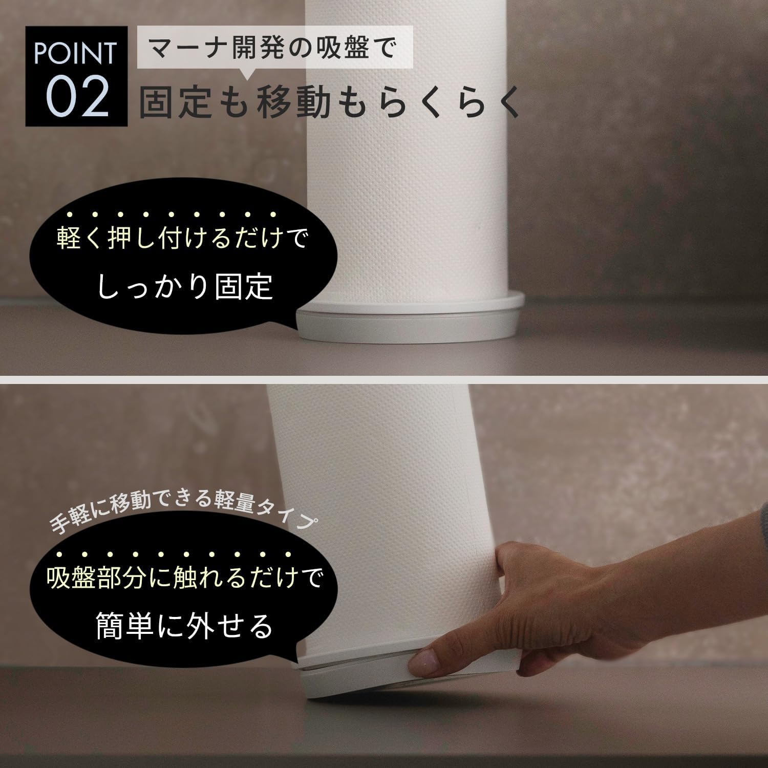 🔥🔥【日本直送《MARNA》吸盤廚房紙巾架】 一款單手可操作廚房紙巾架,讓你在料理或清潔時,即使手濕或忙碌,也能輕鬆撕取紙巾。採用獨家開發的 REPITA 吸盤技術,只需輕輕一壓即可牢固固定於平滑表面,無需工具或黏貼。吸盤可重複使用,拆卸也只需輕觸側邊,簡單又不留痕跡。紙巾架本體設計簡約,適用市面上多數廚房紙巾尺寸,無論是日常擦拭、料理備料或清潔桌面,都能快速應對,兩種大小可選👍🏻 【M】約 Φ132 x 225mm | 250g 【L】約 Φ160 x 235mm | 330g 材質:ABS 樹脂、熱可塑性彈性體、 聚丙烯 產地:中國 _________________________________________ 💬 唔想錯過最新產品資訊及優惠歡迎加入我哋Whatsapp群組: https://chat.whatsapp.com/IJFfq1i7kMz46Zjc1NSXQF ___________________________________________