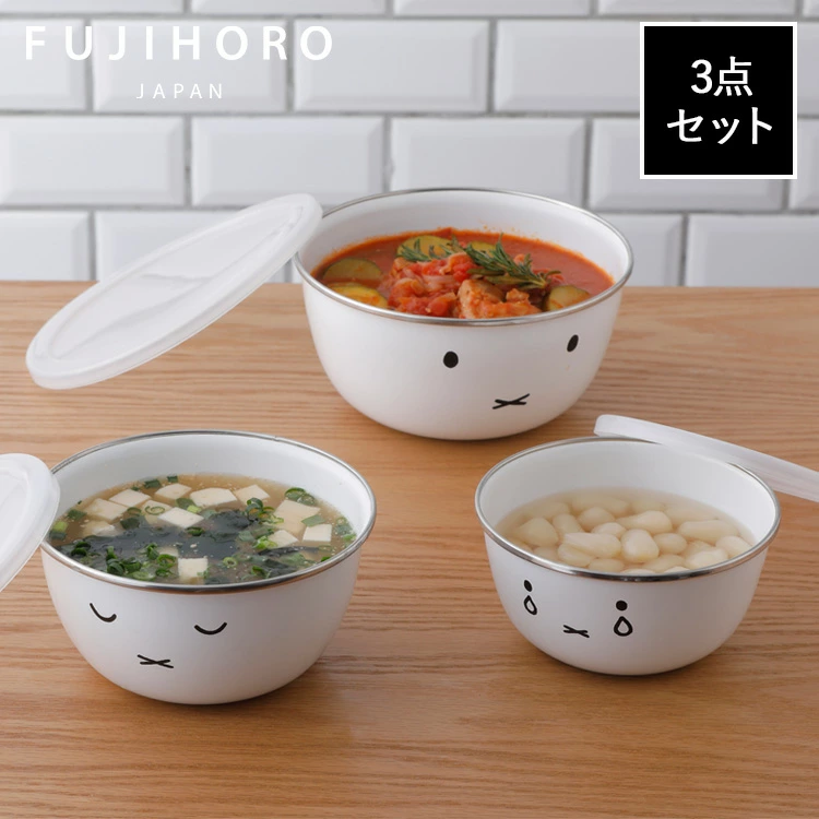 🔥🔥【日本直送《MIFFY x FUJIHORO》琺瑯食物盒三件套】圓形