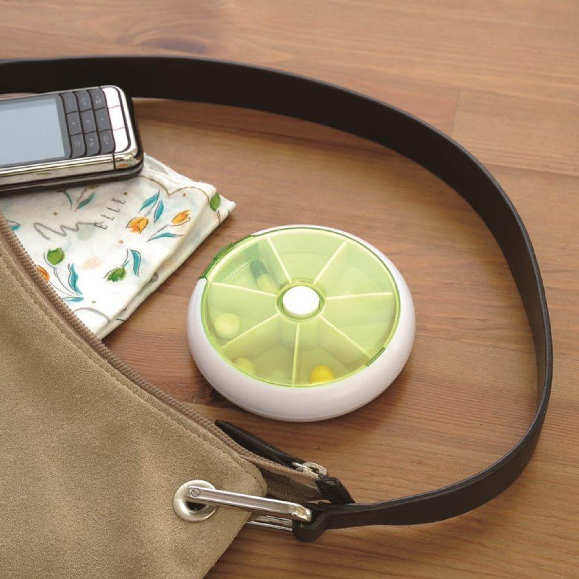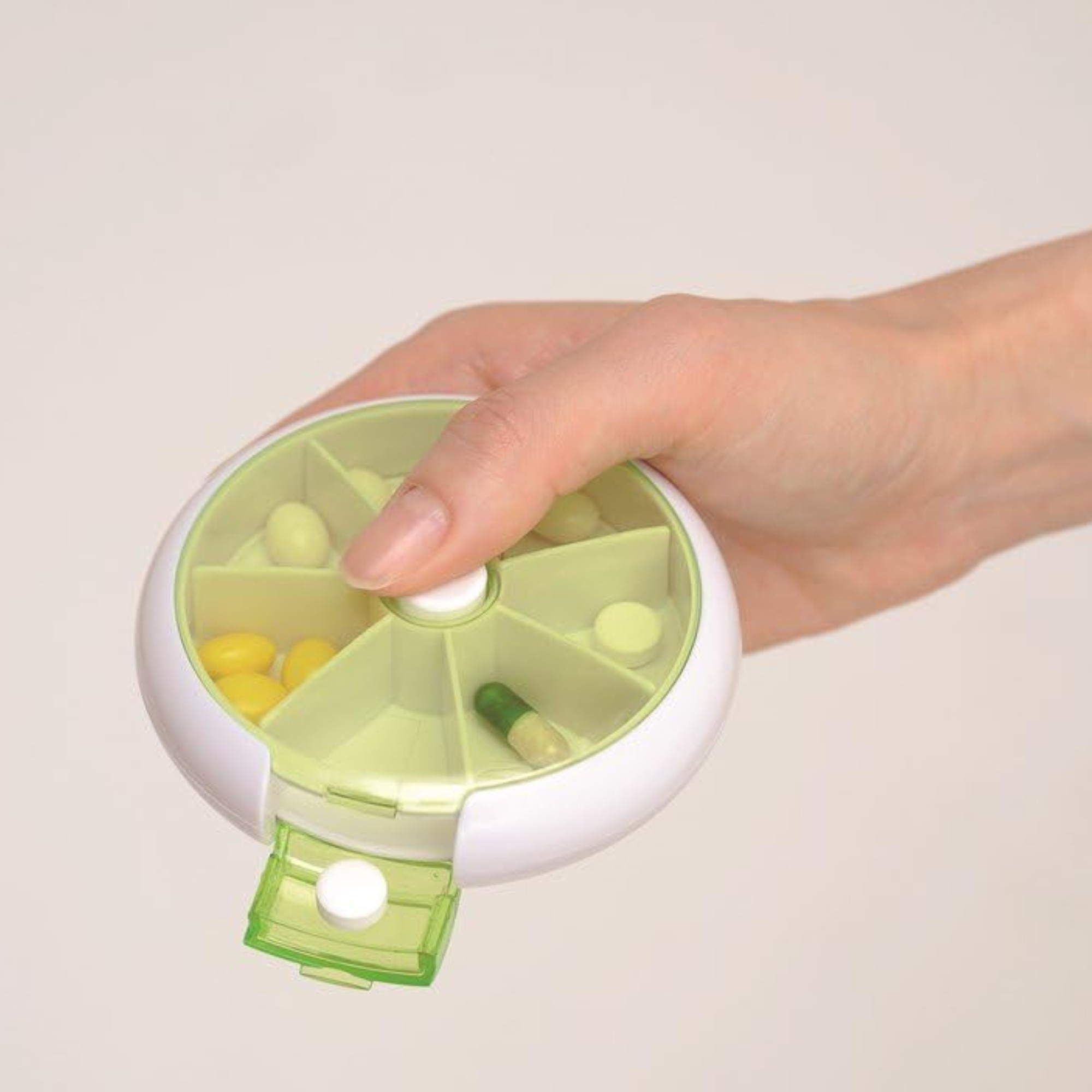 🔥🔥【日本直送《TACAOF》旋轉式便攜藥盒】 由日本幸和製作所推出的實用型外出藥物收納工具,專為需要定時服藥人士而設。產品採用中央按鈕設計,只需輕按即可令內部藥盒旋轉,方便快速取出所需藥物,特別適合長者或手部靈活度較低人士使用。內盒分格清晰,可按日或時段分類藥物,減少服藥錯誤。整體設計小巧圓潤,便於放入手袋或外出攜帶,提升日常服藥管理的便利性。此產品屬於TacaoF福祉用品系列,結合實用與簡約風格,適合日常生活或旅行時使用👍🏻 材質:ABS樹脂 尺寸:寬93 × 深93 × 高33 毫米 重量:約 120 克 產地:中國 日本直送約 3-4 星期 ___________________________________________ 💬 唔想錯過最新產品資訊及優惠歡迎加入我哋Whatsapp群組: https://chat.whatsapp.com/IJFfq1i7kMz46Zjc1NSXQF ___________________________________________