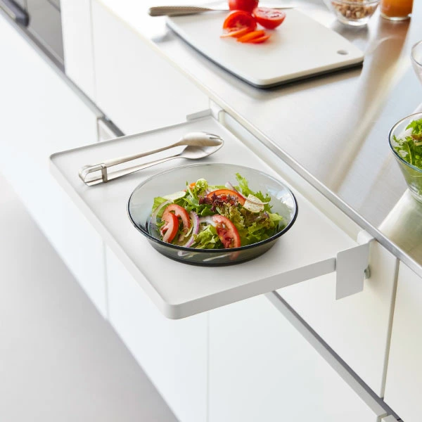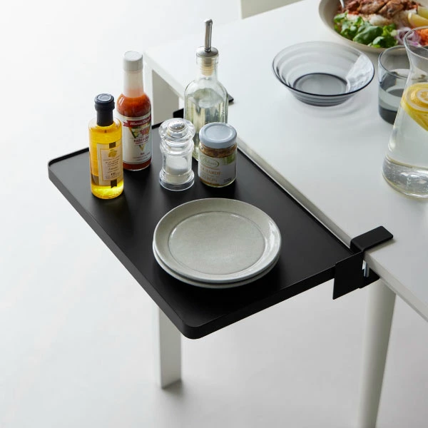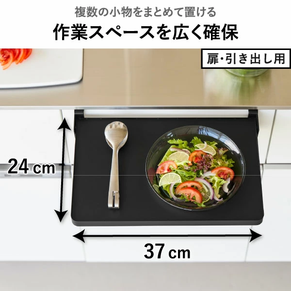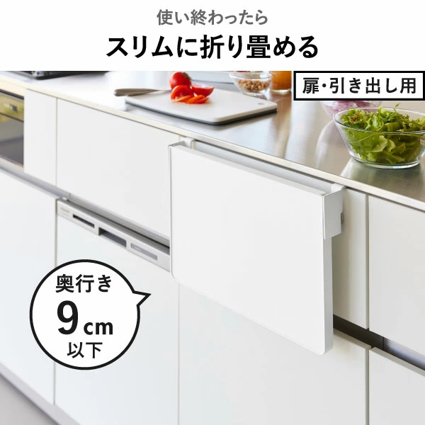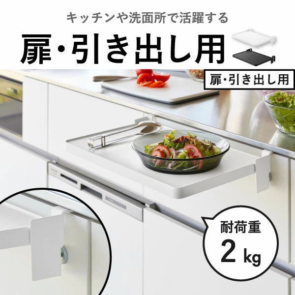 設計可掛於廚櫃門或抽屜邊緣,安裝簡便無需鑽孔,特別適合租屋住戶。使用時只需單手提起即可展開,具備安全鎖扣設計,能穩固承重約 2 公斤,適合臨時放置食材或廚房小物。收起後僅厚約 7cm,纖薄不佔空間,方便日常收納。主體採用鋼材環氧樹脂粉末塗層,搭配矽橡膠緩衝材質,耐用且不易刮傷櫃門。提供黑白兩色選擇,適合廚房、浴室或辦公室使用👍🏻