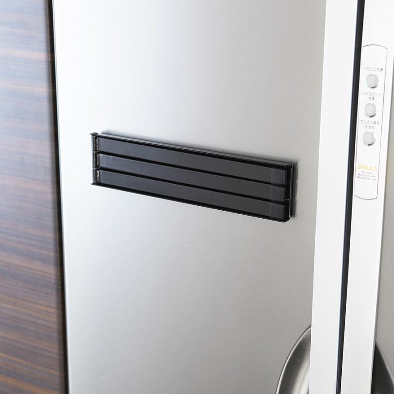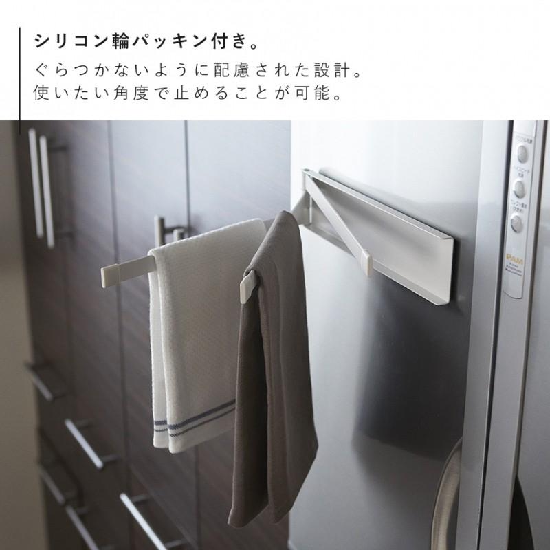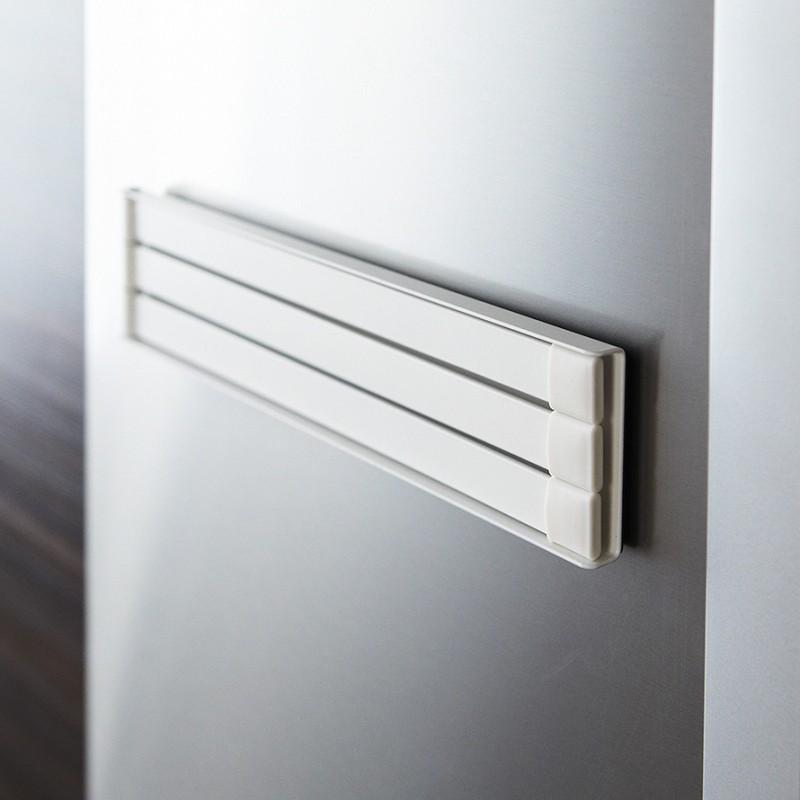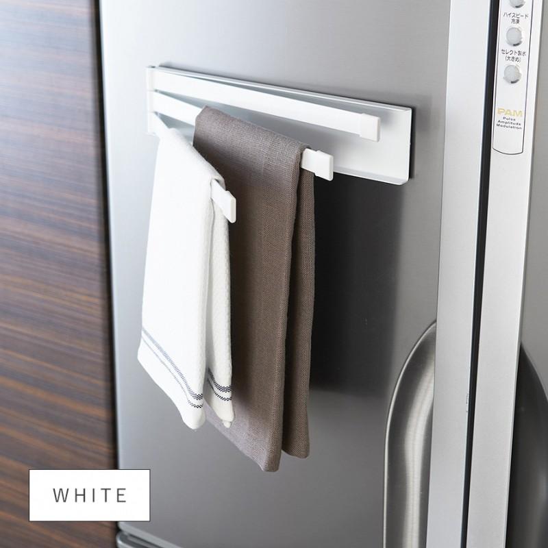 設計簡約實用,背面配有強力磁石,可直接吸附於冰箱或金屬櫃面,無需打孔安裝,方便隨時移動位置。掛架可同時懸掛多條布巾或抹布,保持整齊乾爽,避免堆疊滋生異味。表面經粉體塗裝處理,耐用防鏽,適合廚房、茶水間或工作間使用。尺寸纖巧,不佔空間,能有效提升收納效率,令家居環境更整潔👍🏻