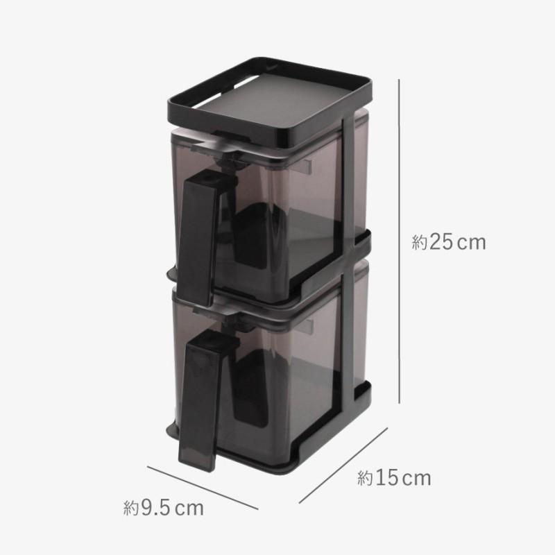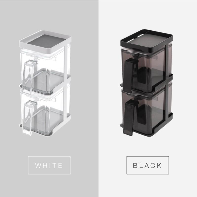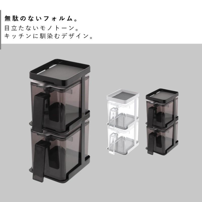 套裝包含三層纖薄調味料架及兩個大容量調味料盒,設計以節省檯面空間為主,能在僅一個調味料盒的寬度下放置最多三個盒子,適合小廚房或需要整齊收納的家庭。架身採用堅固的粉體塗裝鋼材,耐用穩固,並配有三個掛鉤,可懸掛小匙或削皮器等小工具,方便隨手取用。調味料盒容量約650ml,附有小匙並可直接在盒內完成刮平操作,使用衛生且方便。盒子可拆卸清洗,耐冷熱範圍約-40℃至80℃,適合存放砂糖、鹽或其他常用調味料。整體設計簡約時尚,黑白兩色可選,能與不同廚房風格融合👍🏻
