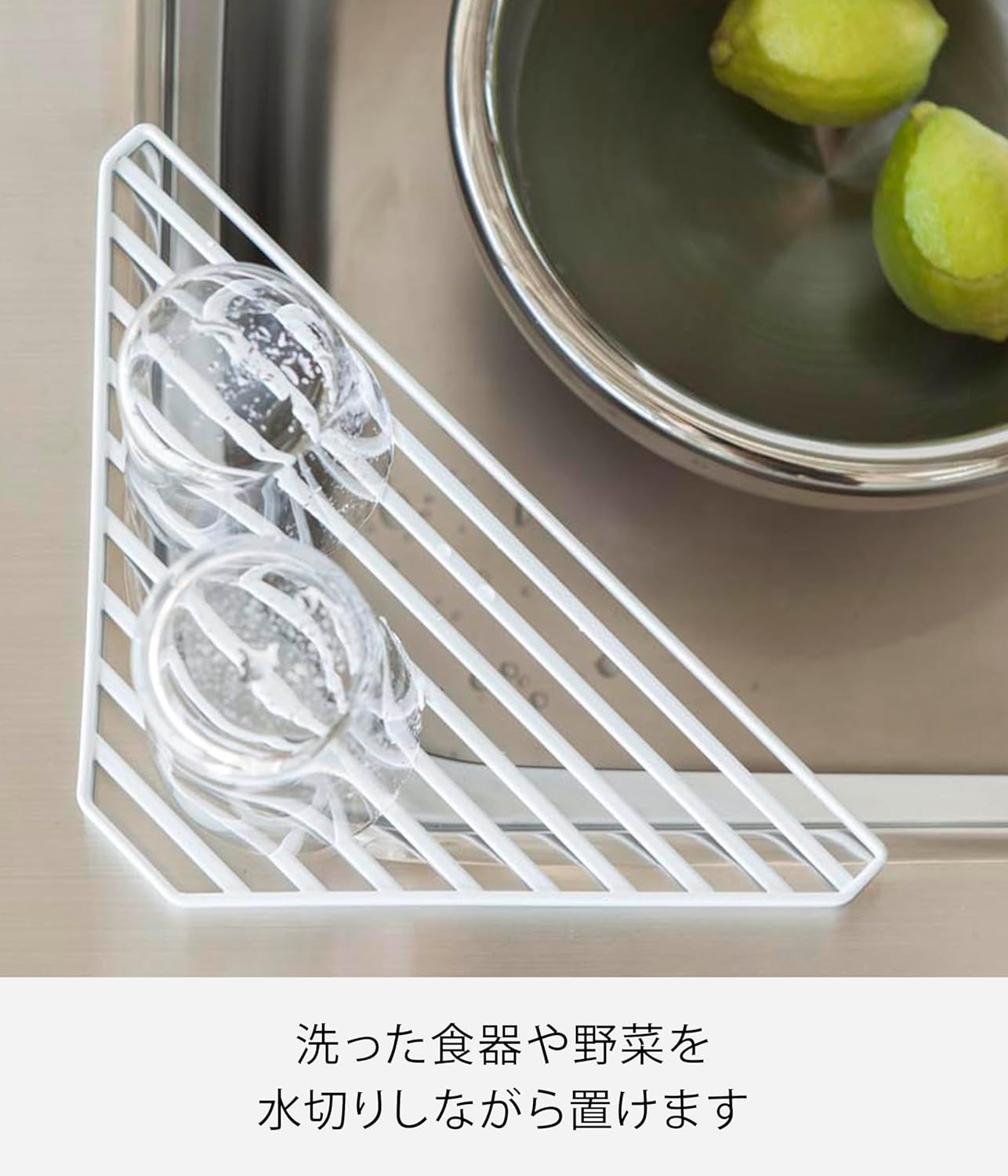 這款由日本山崎實業設計的鋅盤角落瀝水架,是徹底善用廚房死角的收納神品。只需放置於鋅盤邊緣的直角位置,即可瞬間增加置物空間,非常適合用來放置濕漉漉的洗潔精、海綿、鋼絲刷,甚至是洗淨後的玻璃杯或小鍋具。架身採用優質鋼材製成,經過獨特的防鏽塗層處理,耐水性極佳,即使長期接觸水分亦不易生鏽。其簡約的三角形網格設計不僅美觀,更能確保通風透氣,防止積水產生異味或滋生細菌。架底配有防滑膠墊,確保在濕滑的鋅盤面上依然穩固不移位,是提升廚房整潔效率的必備小配件👍🏻