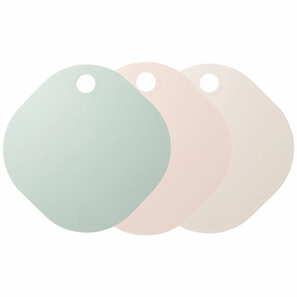 每塊切菜板尺寸適中,無論是切蔬菜、水果、肉類或麵包均可靈活運用。板面經抗菌加工處理,搭配止滑紋理設計,切割時更穩定不易滑動。每塊切菜板均設有吊孔,方便晾乾或吊掛收納,吊孔亦可作為意粉定量孔使用,實用性高。三件套分別為白、灰、黑三色,便於按食材分類使用,減少交叉污染,提升整體備餐衛生與效率。整體採用輕巧塑料材質製成,堅固耐用,適合日常反覆使用,亦可放入洗碗碟機清洗,節省清潔時間👍🏻