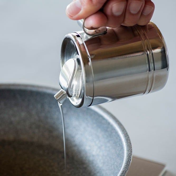 只需稍微傾斜即可倒油,當您將其恢復到原來的位置時,淚滴形嘴會完美停止,使烹飪變得舒適。可以輕鬆控制所加油的量,而不會過量。