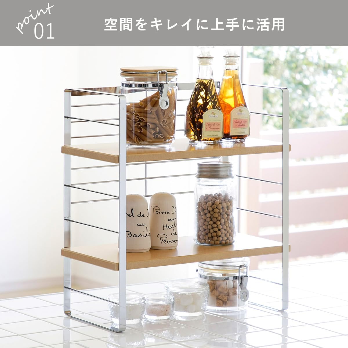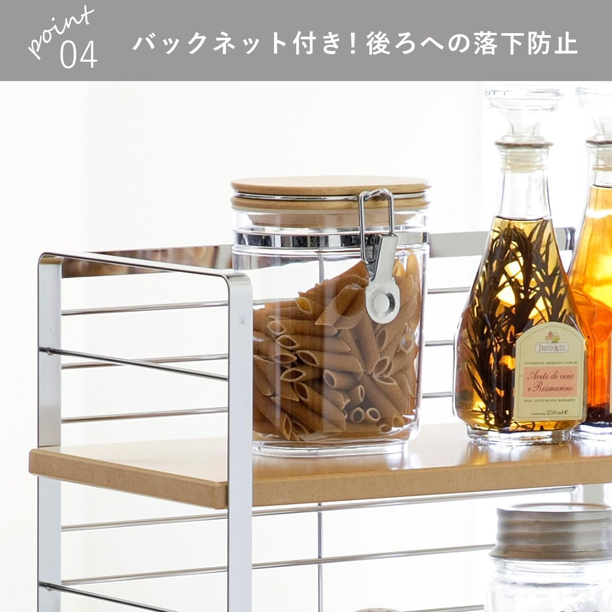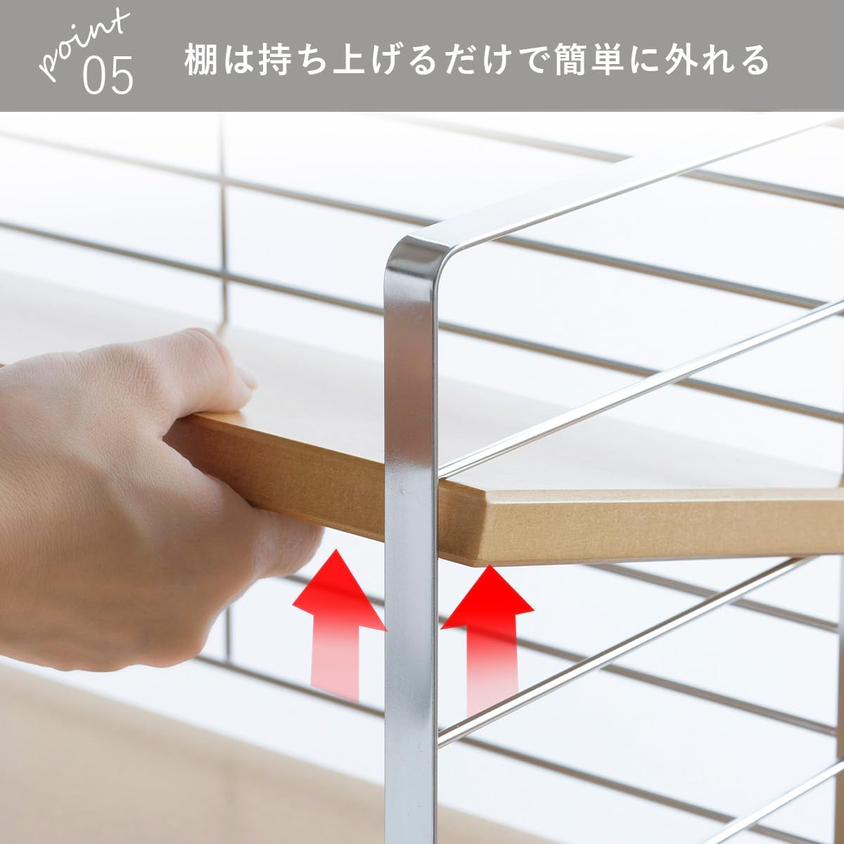 由日本新潟縣燕市製造,採用堅固的鋼材框架及背板(鍍鉻處理),層板則以MDF中質纖維板製成並經過耐用的聚氨酯塗裝,底部配有矽膠防滑墊,設計穩固耐用。層板可作6段高度調節,每層承重約4kg,能靈活收納鍋具、調味料或餐具。背板網格設計有效防止物品掉落,並可掛放小工具,特別適合廚房或餐桌空間有限的家庭,能充分利用窗台位置,保持檯面整齊👍🏻