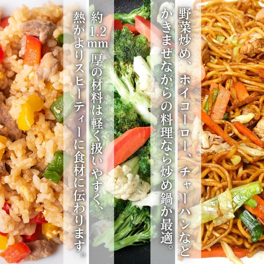 採用日本製高品質鐵材打造,使用時可輕鬆補充日常所需的鐵分。鍋體擁有優異的熱傳導性能,能迅速加熱並鎖住食材鮮味,特別適合需要翻炒的料理,如炒青菜、回鍋肉、炒飯等,是廚房中不可或缺的實用好鍋。
