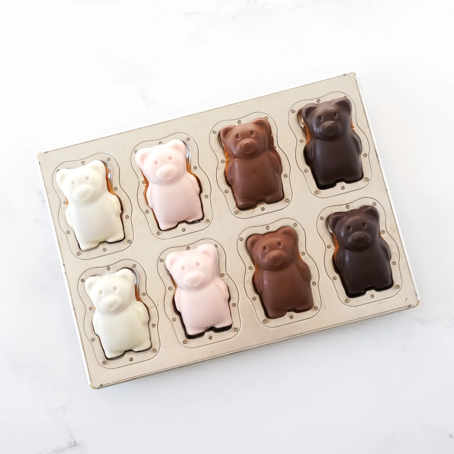 日本燕三条工藝製造,材質為高品質馬口鐵並經過專業矽膠塗層處理,具備優異的脫模效果,無需空燒即可直接使用。模具設計為可愛熊仔造型,一次可製作8個,適合製作蛋糕、麵包或巧克力甜點。矽膠塗層能減少油量與粉量的使用,烘焙後成品表面光滑,顏色均勻,清潔亦更方便。此模具特別適合家庭烘焙、甜品店或烘焙教室使用,兼顧耐用性與美觀度👍🏻
