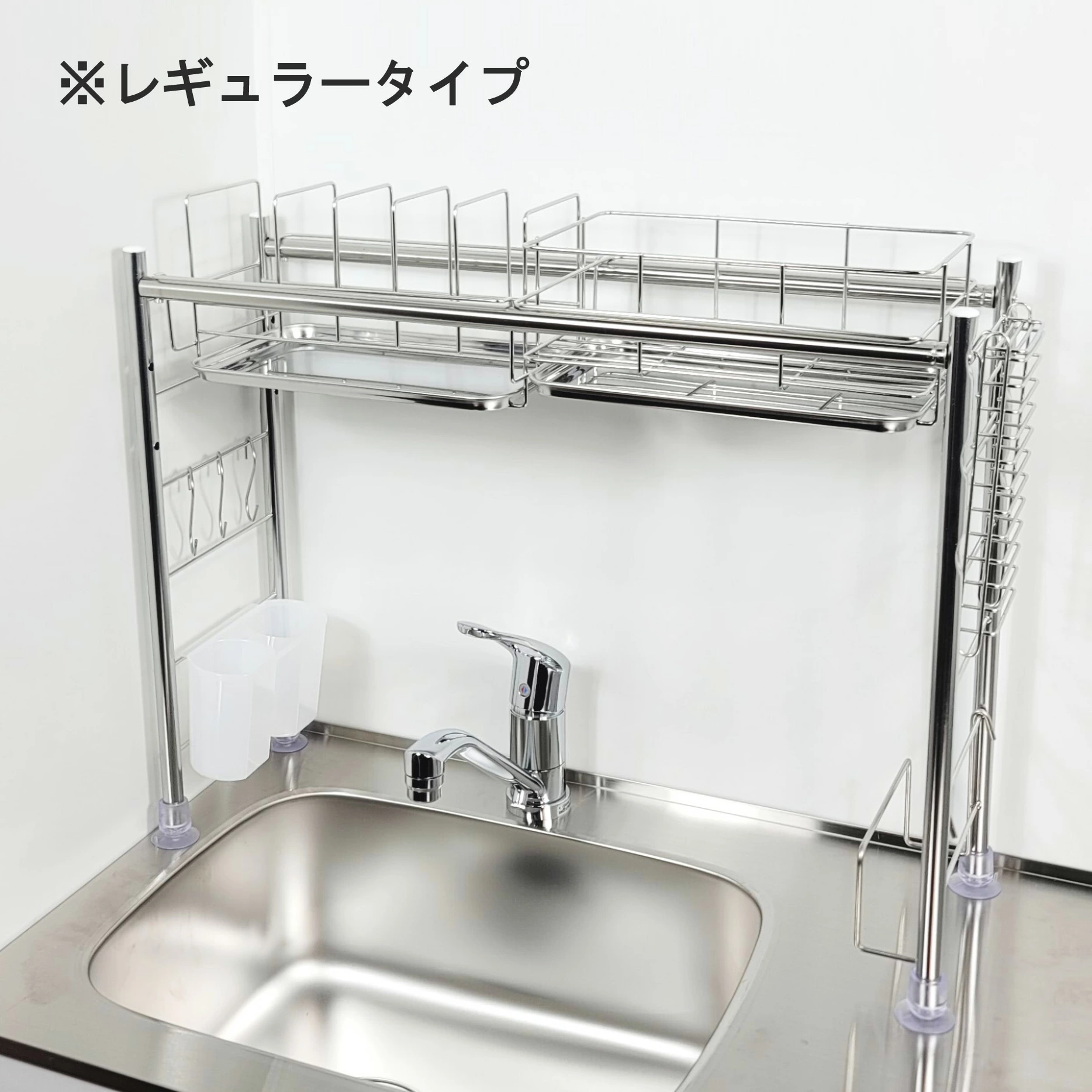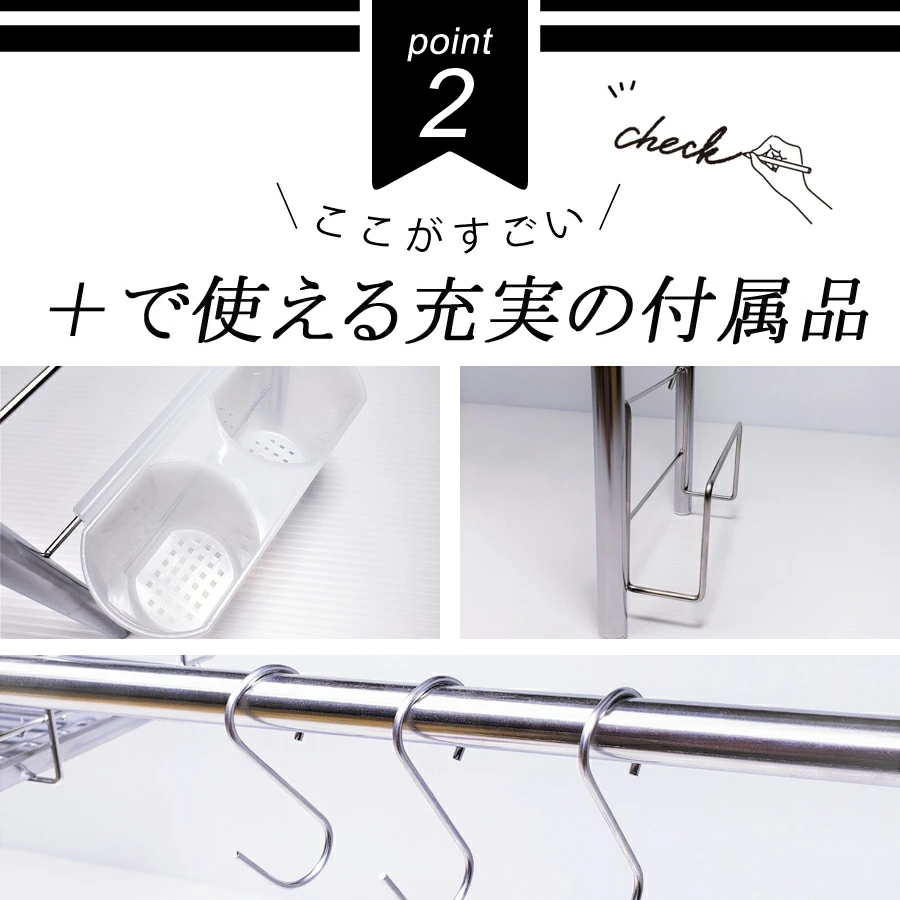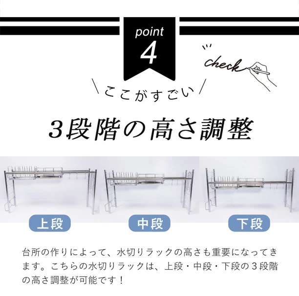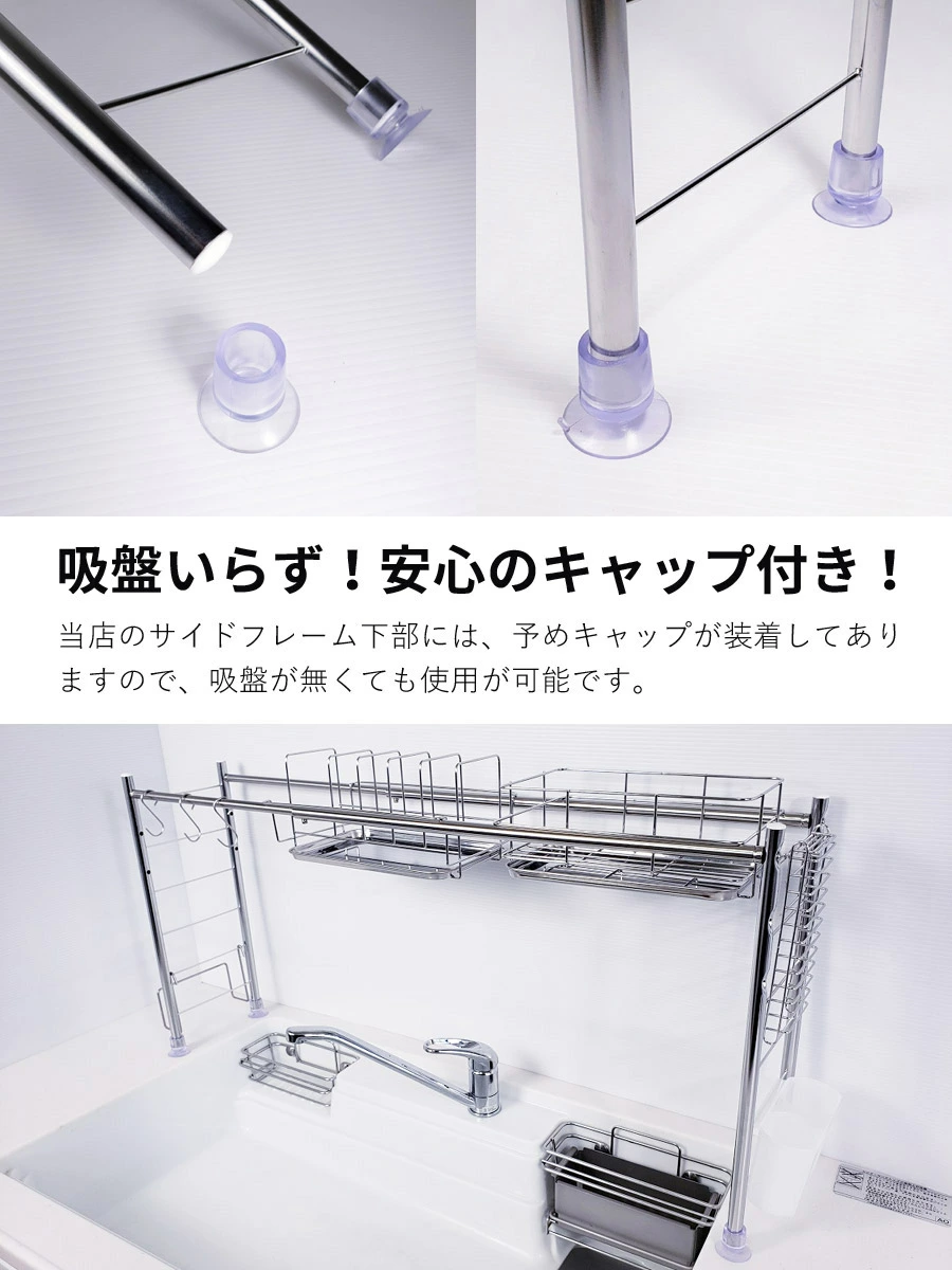 採用全不鏽鋼材質製造,完全不使用容易劣化的塑膠連結部件,堅固耐用且設計簡潔。尺寸可伸縮,寬度約60~104cm、深度約19cm、高度約46cm,適合不同大小的水槽使用。重量輕巧,耐荷重約2kg,能穩固放置碗碟、玻璃杯及砧板。此水切架能有效利用水槽上方空間,增加檯面工作區域,特別適合一人或兩人居住的小型廚房。日本燕三条製造,品質可靠,設計注重耐用性與衛生,能長期使用而不易生鏽。👍🏻