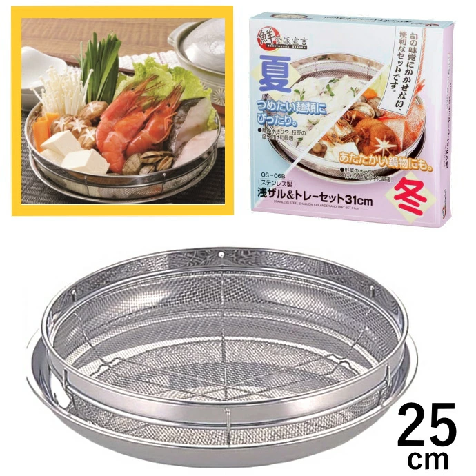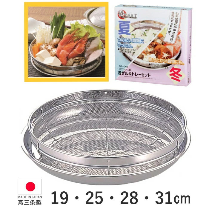🔥🔥【日本製《金伊工業》不鏽鋼瀝水篩+托盤套裝】 🇯🇵🇯🇵日本製造🇯🇵🇯🇵 不鏽鋼淺笊篱與托盤套裝以 18-8 及 18-0 不鏽鋼製作,耐用度高且不易沾污,適合日常處理麵類、蔬菜及鍋物食材。淺笊篱可用於瀝水、冷卻或盛載食材,而托盤可承接滴水或直接作為上桌盛器,兩件組合使用能保持檯面整潔。笊篱網孔均勻,瀝水速度快;托盤邊框結構穩固,方便搬動。4種尺寸可選,無論夏季冷麵、冬季鍋物或日常備料都能派上用場,屬家庭廚房實用的基本工具👍🏻 ・19cm: 瀝水篩 ~ 約Φ190×高58mm、托盤 ~ Φ185×高22mm | 194g ・25cm: 瀝水篩 ~ 約Φ250×高58mm、托盤 ~ Φ240×高18mm | 270g ・28cm: 瀝水篩 ~ 約Φ280×高58mm、托盤 ~ Φ280×高17mm | 358g ・31cm: 瀝水篩 ~ 約Φ310×高66mm、 托盤 ~ Φ302×高25mm | 450g 材質:不鏽鋼 產地:日本 💢如沒註明【現貨】訂貨需時約3-4星期 ___________________________________________ 💬 唔想錯過最新產品資訊及優惠歡迎加入我哋Whatsapp群組: https://chat.whatsapp.com/IJFfq1i7kMz46Zjc1NSXQF ___________________________________________