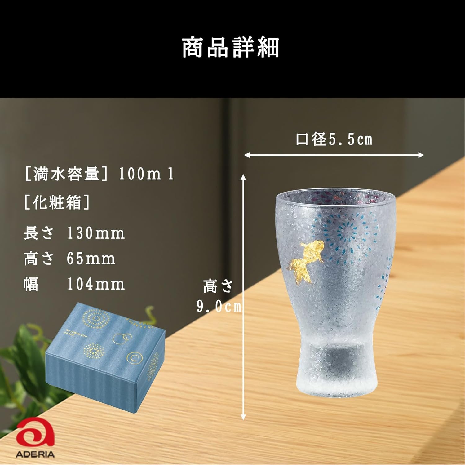 ADERIA 的「花火」酒杯對裝以日本傳統意匠為靈感,杯身以透明玻璃呈現冰晶般的細緻紋理,並以金彩點綴出如夏夜花火般的光影效果,視覺上帶有清涼與雅緻的氣息。每個酒杯容量約 100ml,大小適合品飲清酒、梅酒或餐前酒,杯身輕巧易握,適合日常使用或節日宴客。系列屬於 ADERIA 的 Premium Nippon Taste 系列,以現代玻璃工藝重現日本古典美感,設計上兼具觀賞性與實用性,亦適合作為禮品。套裝為兩個酒杯組合,並以日本製造,品質穩定,玻璃透亮度高,適合家庭於聚會、節慶或日常小酌時使用👍🏻