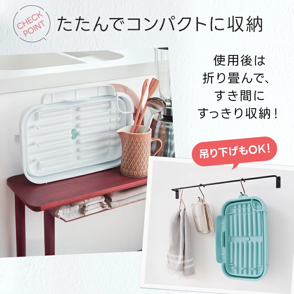 小家庭或廚房空間不足的話非常適用,可以垂直或水平移擺放,配有支架,可防止杯子或水瓶等掉落。配有排水嘴,可讓籃子中積聚的水直接流落洗碗盤。排水塞可輕鬆排水,排水口可垂直和水平旋轉。底部的腿是防滑的。由於它有一個懸掛孔,因此可以折疊起來懸掛存放,2色可選👍🏻