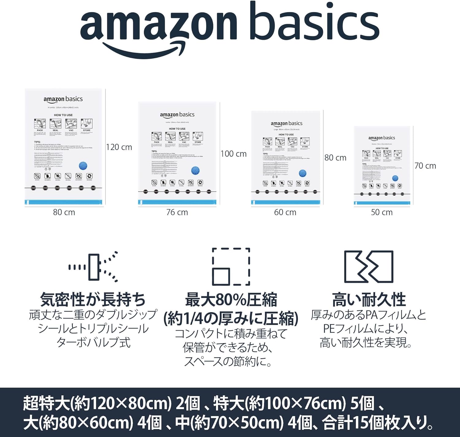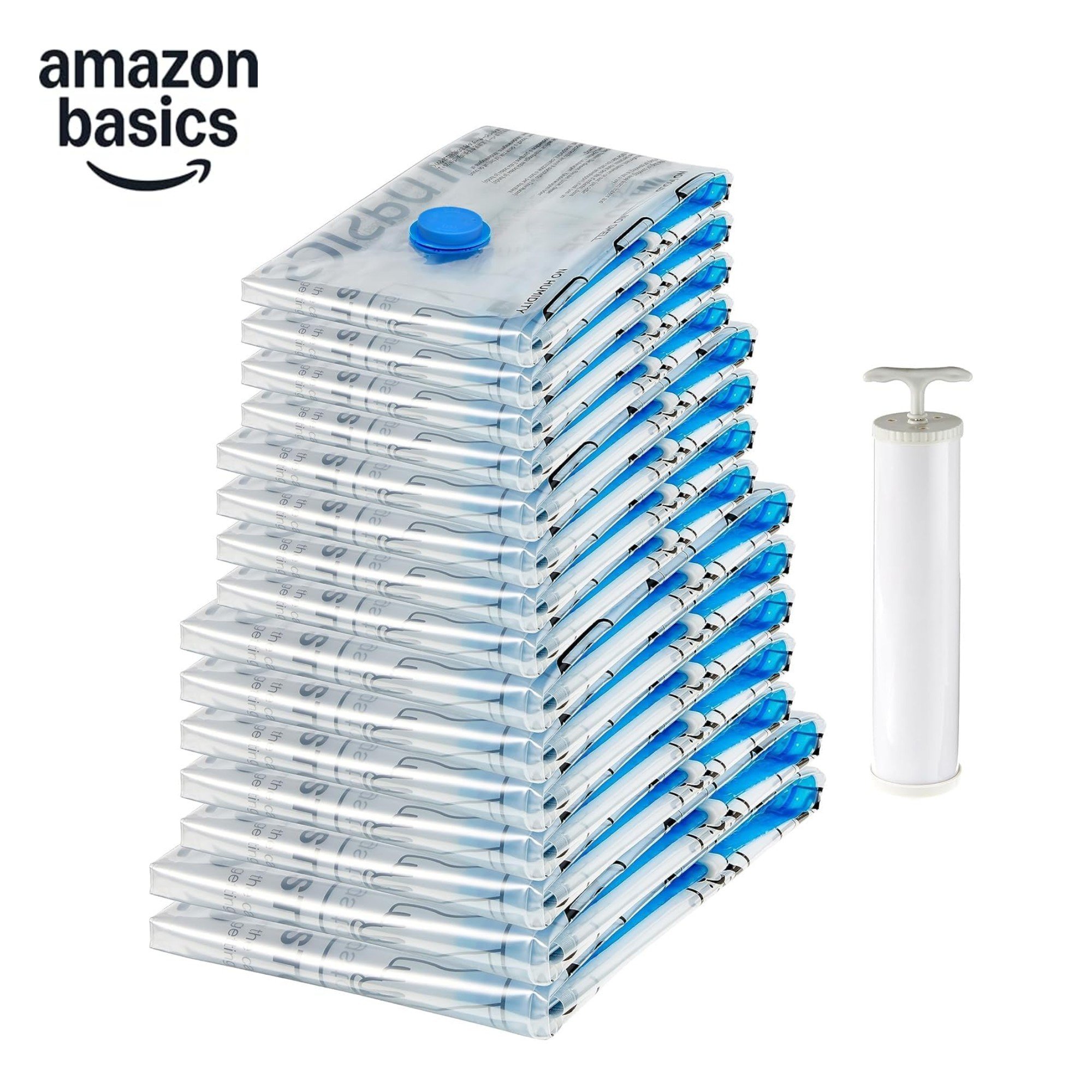 💥💥激抵💥💥 🔥🔥【日本直送《AMAZON BASICS》真空壓縮收納袋15件組】附手動抽氣泵