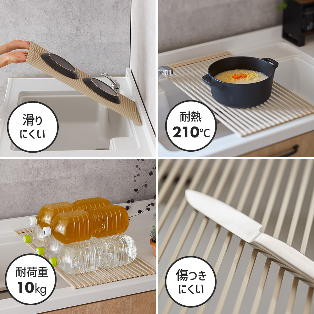 🔥🔥【日本直送《SAKU RAKU》可摺疊瀝水墊】淺灰 廚房空間有限,瀝水好多時會係一個大難題,呢塊可摺疊瀝水墊就非常方便,不用時可收起放入廚櫃,矽膠+不鏽鋼材質,耐熱度達210度,就算用黎放剛煮好的廚具都冇問題,放係洗手盤時負載力達10kg,堅固耐用👍🏻 材質:矽膠+不鏽鋼 尺寸:長52 x 闊32 x 厚0.7cm 重量:1.1kg 產地:中國 🇯🇵日本直送約3-4星期