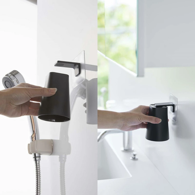 杯底部靠近支架磁鐵就會相互黏在一起。另外,薄膜式的安裝方式不易損壞牆壁,因此可以放心使用。