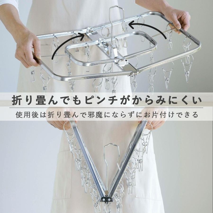 🔥🔥【日本製《下村》不鏽鋼可摺疊衣夾架】24隻 🇯🇵🇯🇵日本製造🇯🇵🇯🇵 全不鏽鋼材質打造,堅固耐用、防鏽抗腐蝕,即使長期使用也能保持如新。獨特的環形掛鉤設計,有效防止夾子打結纏繞,展開收納一氣呵成,省時又省力。24個加長夾子不僅夾力穩固,還貼心地減少手指疼痛感,無論是晾曬襪子、內衣、口罩或嬰兒衣物,都能輕鬆應對。折疊後體積小巧,不佔空間,非常適合都市家庭或單身族使用👍🏻 材質:不鏽鋼 尺寸:展開~約53×31.5×28cm / 收納~約29×31.5×4.5cm 重量:約 685g 產地:日本 🇯🇵日本直送約3-4星期 ___________________________________________ 💬 唔想錯過最新產品資訊及優惠歡迎加入我哋Whatsapp群組: https://chat.whatsapp.com/IJFfq1i7kMz46Zjc1NSXQF ___________________________________________