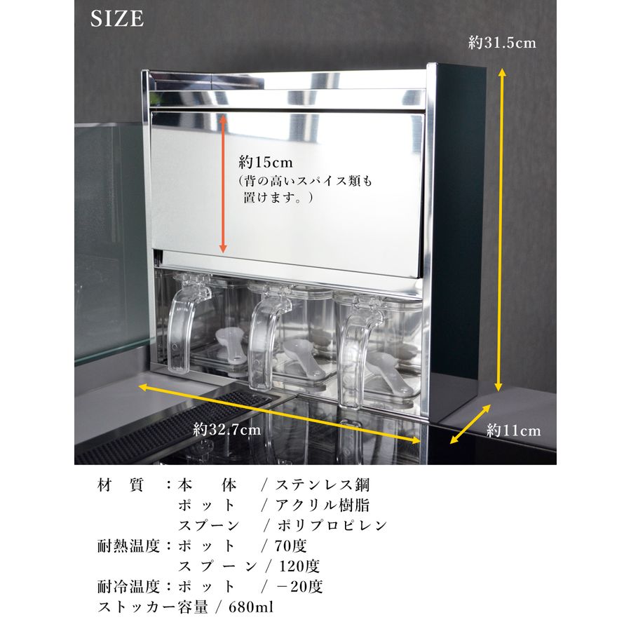 🔥🔥【日本製《双葉工業》調味盒+收納架】 🇯🇵🇯🇵日本製造🇯🇵🇯🇵 收納架以21-0全不鏽鋼製成,比18-8 (304)不鏽鋼更堅硬更耐用,收納架連3個調味料盒,一套解決哂所有煩惱,廚房變得整齊企理,清潔亦非常方便👍🏻 內容: 不繡鋼收納架 x1 調味盒+勺子 x3 尺寸: 收納架 ~ 闊33 x 深11.5cm x 高31.5cm 調味料盒 ~ 10x14x10cm 材質: 收納架 ~ 21-0不鏽鋼 調味盒 ~ 聚丙烯(勺子/聚苯乙烯) 產地:日本製 🇯🇵日本直送約3-4星期
