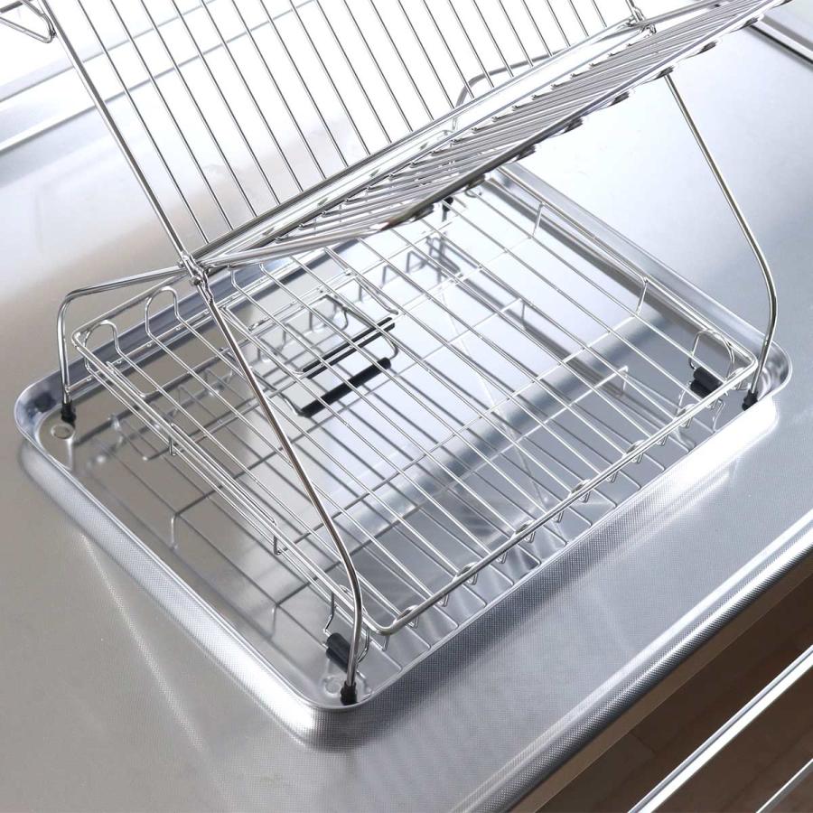 🔥🔥【日本製《大木製作所》不鏽鋼可摺疊瀝水籃】 🇯🇵🇯🇵日本製造🇯🇵🇯🇵 《大木製作所》 是一家歷史悠久的不鏽鋼產品製造商,成立於 1947 年。對於製作過程控製得非常嚴謹,連不鏽鋼線的切割面都經過拋光處理,即使是最細微的細節也很講究,打造出易於上手的日常生活工具。 本產品以可摺疊雙層設計,好處是節省空間但收納量大及易於分類擺放,上層可以整齊地放大量碟,下層高度足夠放置較大的廚具,摺疊後收納不但方便,而且可以企立擺放瀝乾。採用高質耐用不鏽鋼製成,不易變形和生鏽及易於清潔。上下層都設有瀝水盤因此可放置在任何地方及易於打理。除有一個砧板架可掛在上或下層,也可用作掛毛巾用。 主體採用18-8不鏽鋼,盤子採用18-0不鏽鋼,所有切割位經過打磨拋光因此不會有棘手感覺,一個質素非常高的瀝水籃👍🏻 成份:不鏽鋼 尺寸: 使用時:(大約)寬 43.5 x 深 32 x 高 35 cm 存放時:(大約)寬 37 x 深 20 x 高 46.5 cm 重量:2.5kg 產地:日本 🇯🇵日本直送約3-4星期