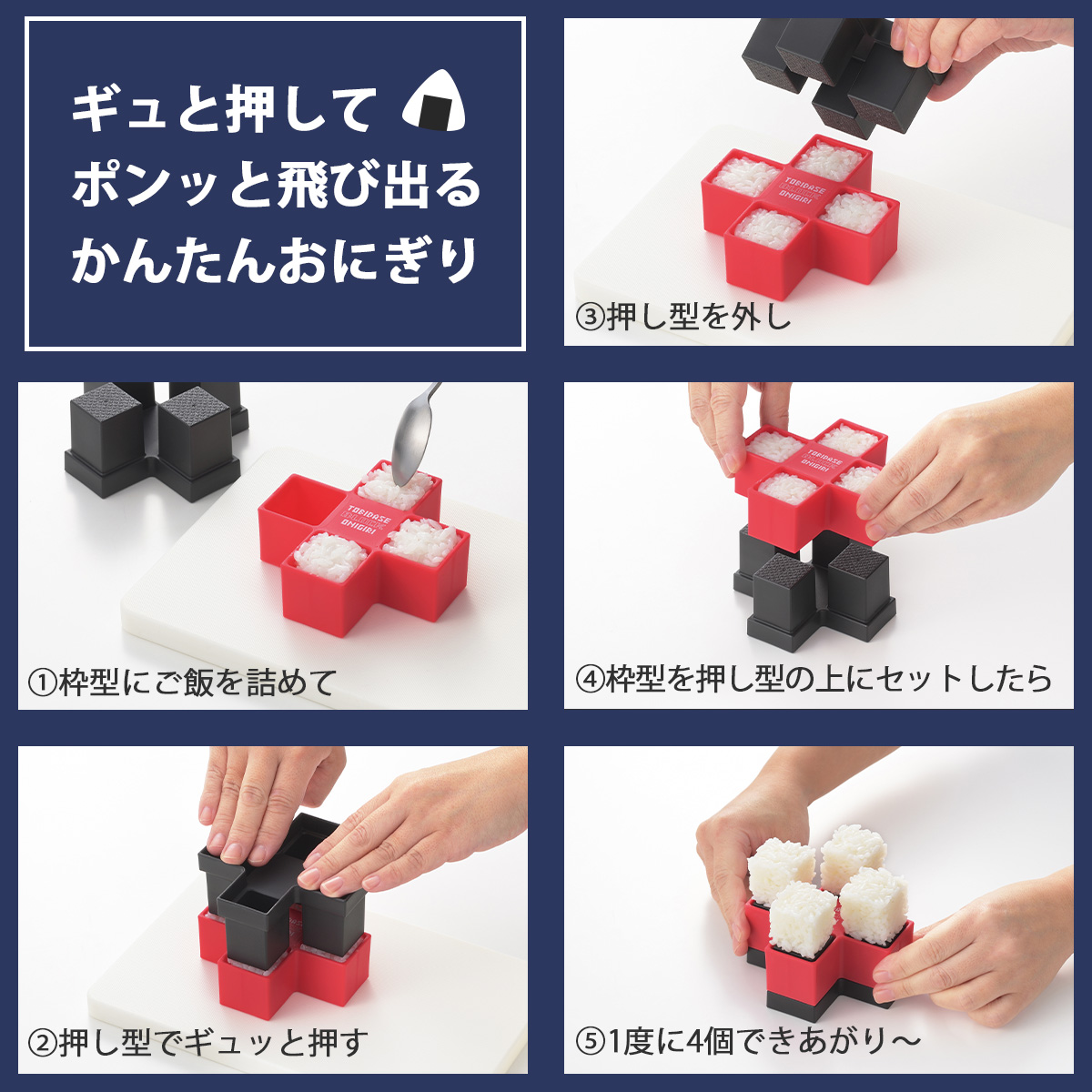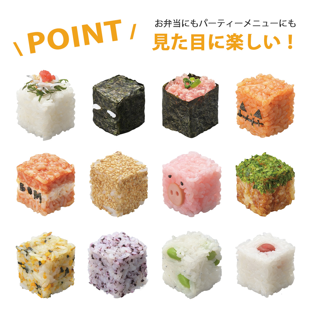 🔥🔥【日本製《AKEBONO》立方飯糰壓模】 🇯🇵🇯🇵日本製造🇯🇵🇯🇵 可以簡易地做出漂亮的方形飯糰,壓模有雙重壓花,可防止大米粘在其上。每粒飯糰大小均一,食用方便,可配上不同配料創作不同飯糰。可入洗碗機,兩色可選👍🏻 材質:聚丙烯(耐熱110℃,耐寒-20℃) 尺寸:寬 10.2 x 深 10.2 x 高 4.5 公分 重量:80g 產地:日本 🇯🇵日本直送約3-4星期