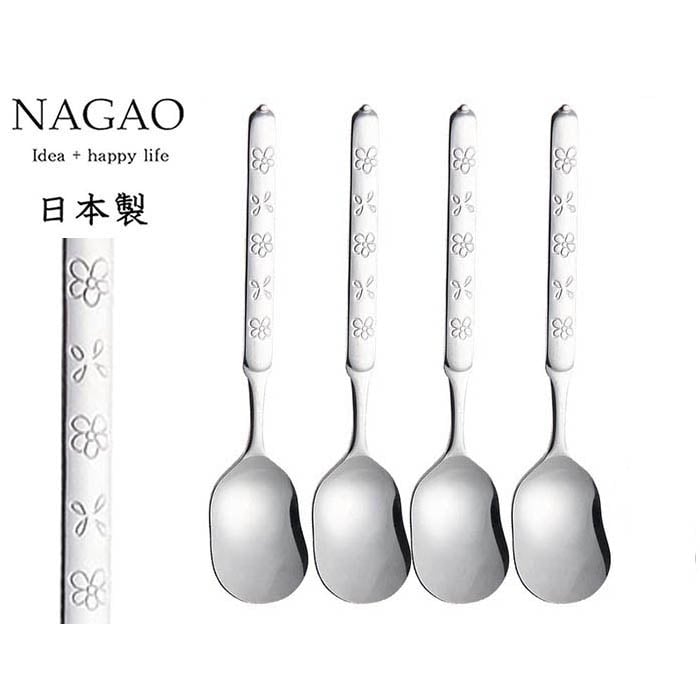 🔥🔥【日本製《NAGAO》燕三条製不鏽鋼餐具】花花雪糕羮 x 4隻 🇯🇵🇯🇵日本製造🇯🇵🇯🇵 《NAGAO》出品,精美花花圖案,簡潔包裝將成本降至最低,日本不鏽鋼重鎮燕三条生產,18-0高質不鏽鋼,質素有保證,一套4隻👍🏻 材質:18-0不鏽鋼 尺寸:長12.8cm 產地:日本製 🇯🇵日本直送約3-4星期