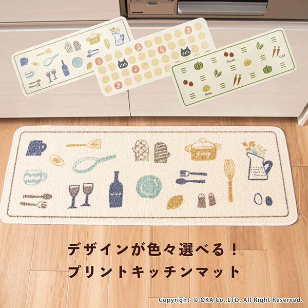 🔥🔥【日本製《OKA》再生紗廚房地墊】45x120m 🇯🇵🇯🇵日本製造🇯🇵🇯🇵 質地光滑的廚房墊,製造商將製成衣時產生的邊角料再利用,並在由再生紗線製成的織物上印製圖案。背面有防滑加工,因此非常適合在廚房中使用。即使因飛散的調味料而弄髒,也能徹底清洗,因此可以長時間乾淨地使用。冬天如果將它放在床邊,可以防止腳踩在地板上時感到寒冷👍🏻 材質:棉 / 聚酯纖維 / 腈綸 /人造絲 其他 尺寸:長120 x 闊45 x 高0.4cm 重量:370g 產地:日本製 🇯🇵日本直送約3-4星期