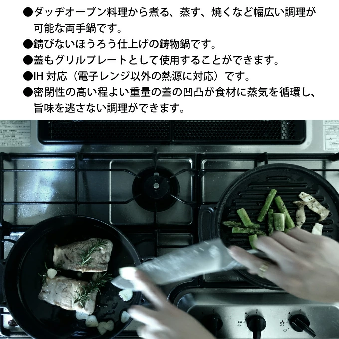 🔥🔥【日本製《OVJECT》鑄鐵兩用鍋】 🇯🇵🇯🇵日本製造🇯🇵🇯🇵 《OVJECT》產品設計富品味而實用性高,呢套多功能鑄鐵鍋鍋蓋可用作煎烤盤使用,條紋凹槽設計可有助去除多餘油脂,配合鍋使用可以做出煎, 焗, 燉, 煮, 煲, 炒等各式料理,鑄鐵有良好導熱性,鍋蓋厚實密閉性佳,水份不易流失,令到可以只須用中慢烹調節省能源,鍋蓋上的凹坑設計可讓蒸氣循環令水份變為水滴保持食物的鮮味,琺瑯質料容易打理不易生鏽,明火, 焗爈及電磁爈都適用👍🏻 尺寸: 連蓋:直徑24cm(29.4cm 含手柄)x 高6cm 蓋:直徑24cm x 高1.3cm (1.8kg) 鍋:直徑24cm(29.4cm 含手柄)x 高4.7cm (2.2kg / 1.6L) 材質:琺瑯 產地:日本製 (網上資料供參考) 開鍋 1、以溫熱水將鑄鐵鍋沖洗一遍(不需使用清潔劑),並用絨毛刷或海綿輕輕刷洗,清洗後以清潔的乾布或紙巾擦乾(切勿用鋼絲刷或菜瓜布)。 2、開小火,慢慢將鑄鐵鍋加熱至完全乾燥後關火。 3、於表面抹上一層食用油並開小火慢慢加熱約10~20分鐘,待冷卻後即可開始使用。在完成上述的簡易流程後,可以加入一匙食用油,再放入一些菜葉類,以小火翻炒可去除鐵味及雜質,然後再重複上述的1、2兩個步驟即可。 清潔 1、每次使用完畢後將鑄鐵鍋以溫熱水及絨毛刷來清洗,切勿使用鋼絲刷等較硬的清潔工具。 ※切勿將炙熱的鍋具直接沖冷水清洗,冷熱溫差會導致琺瑯破損。 2、清洗時以不使用清潔劑為宜,因為有可能將鍋具毛細孔中因養鍋而累積的天然油脂去除。 養鍋 黑琺瑯鍋不一定需要養鍋,若您經常使用,讓烹調過程中的油脂滲入鍋中的毛細孔中即可達到養鍋的目的,產生不沾特性。 1、將清洗好的烤盤以清潔的乾布或紙巾擦乾。 2、開小火,慢慢將鑄鐵鍋加熱至完全乾燥後關火。 3、趁鍋具尚有餘溫時塗抹一層薄薄食用油。 4、請存放於乾燥、通風的地方。 🇯🇵日本直送約3-4星期