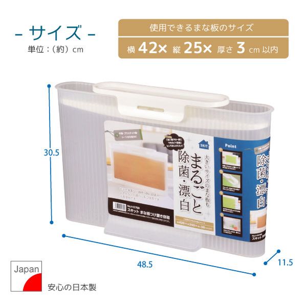 🔥🔥【日本製《PEARL LIFE》砧板消毒盒】 🇯🇵🇯🇵日本製造🇯🇵🇯🇵 砧板要經常消毒以保持衛生,但要找一個大小配合的容器去浸未必咁易,呢個盒就超方便,只要放入砧板及注入消毒濟必可100%覆蓋整個砧板,既安全又高效,用來消毒廚房用品都可以👍🏻 材質:聚丙烯(耐熱溫度100度,耐寒溫度-20度) 尺寸:寬485 x 深115 x 高305mm 重量:800g 產地:日本 🇯🇵日本直送約3-4星期
